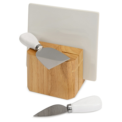 Набор для сыра Cheese Break предназначен для нарезки и подачи разных сортов сыра и любых других закусок. Ножи имеют белые керамические рукоятки, а доска полностью выполнена из керамики. Предметы устанавливаются в удобную деревянную подставку, в которой их можно хранить после использования. В комплект входит: - листовидный нож для твердых сортов сыра, - нож-лопатка для мягких сортов сыра, - керамическая доска для подачи закусок, - деревянная подставка для всех предметов. Гравировка (CO2 лазер) (Без чернения) на данный товар осуществляется бесплатно. Оплачивается только настройка оборудования в размере 2700 рублей на весь тираж.