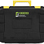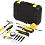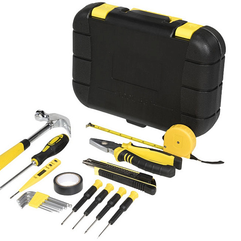 Инструментальный ящик с замком и складной ручкой, включающий молоток-гвоздодер, отвертку с плоским шлицем 4 мм, универсальные плоскогубцы, универсальный нож с фиксатором, 5 шестигранных ключей (2-6 мм) с держателем со стандартными и шаровыми наконечниками, измерительную рулетку длиной 3 м с фиксатором, индикаторную отвертку, изоляционную ленту и 4 прецизионных отвертки. Пластик ABS. Тампопечать (1 цвет (цветные изделия)) на данный товар осуществляется бесплатно. Оплачивается только настройка оборудования в размере 4500 рублей на весь тираж.