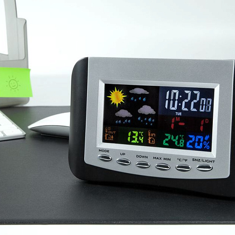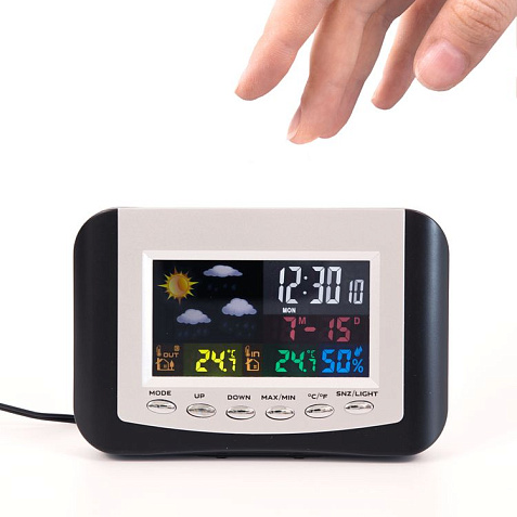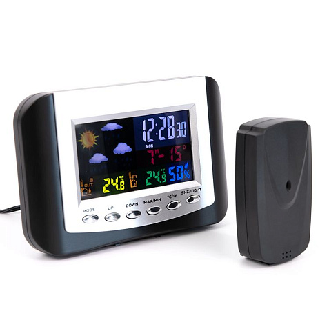 Метеостанция с цветным дисплеем и выносным датчиком точно покажет погоду в доме и за окном.