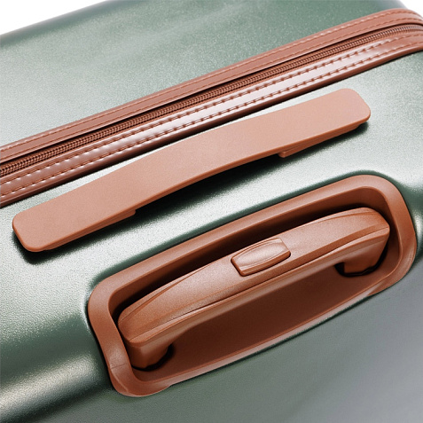 АМЕЛИЯ | AMELIA воплощает собой неповторимый образ, сочетающий эстетику ретро с современной функциональностью. Вся товарная линейка представлена в великолепных темно-изумрудном и кремовом оттенках. Контрастные детали насыщенного коричневого цвета, бронзовые ручки и фурнитура идеально дополняют дизайн, подчеркивают индивидуальность и выразительность каждой модели. Изготовленные из высококачественного АБС-пластика и поликарбоната, чемоданы АМЕЛИЯ | AMELIA обладают удивительной прочностью и легкостью. Четыре резиновых колеса с бесшумным ходом и возможностью поворота на 360° обеспечивают плавное передвижение по любой поверхности, сохраняя при этом полную маневренность. Интегрированный замок TSA с трехзначным кодом гарантирует защиту вашего багажа от несанкционированного доступа. Продуманная концепция больших отделений с перегородкой на молнии и дополнительными карманами максимально оптимизирует использование внутреннего пространства. Легкая телескопическая ручка с несколькими положениями фиксации обеспечивает комфорт в использовании для людей разного роста. Удобные ручки сбоку и на дне корпуса облегчают загрузку и выгрузку чемодана. Боковые держатели позволяют разместить дополнительные дорожные аксессуары.