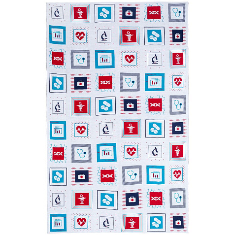 В каждой части общего рисунка, напоминающего лоскутное шитье, в самых теплых красках изображены главные медицинские символы.