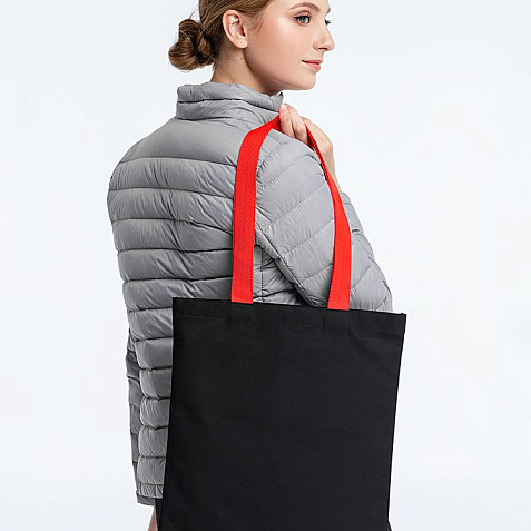 Холщовая сумка BrighTone, черная с красными ручками