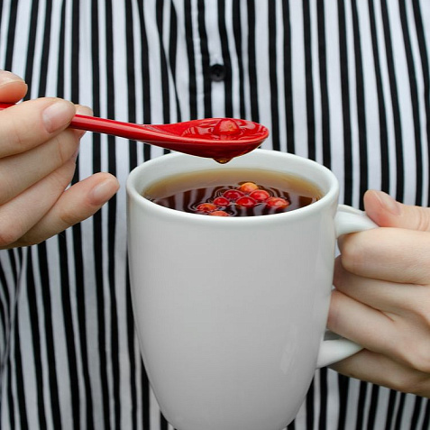 Кружка Cheer Up — для тех, кто предпочитает пить чай и кофе с молоком, сахаром или вареньем. С ней ложка всегда под рукой!