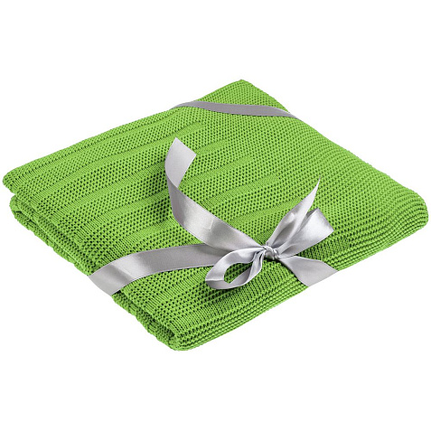 Плед перевязан атласной лентой и поставляется в пакете с липким краем.