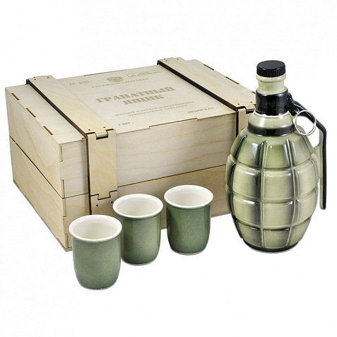 День Победы - один из самых важных и памятных государственных праздников в нашей стране. В этот знаковый для России день принято дарить памятные сувениры. Подарочный набор День Победы - это великолепный подарок на 9 мая, который запомнится надолго. В оригинальном деревянном гранатном ящике находятся керамические боеприпасы: штоф в виде гранаты и три стопки. Все сувениры изготовлены из высококачественного материала, поэтому они прослужат долго и будут радовать глаз. Этот подарочный набор станет прекрасным дополнением к праздничному столу. Внимание! Данное изделие относится к категории повышенной хрупкости. Для обеспечения его целостности и безопасной транспортировки настоятельно рекомендуется использование обрешетки. Обрешеточная упаковка является обязательной при доставке, и компания Oasis не несёт ответственности за повреждения, возникшие в результате ненадлежащей упаковки или транспортировки без обрешетки.