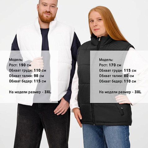 Жилеты представлены в двух версиях. Версия 1 — Произведена в Китае, с более гладким материалом верха. Информация по составу и размеру, а также рекомендации по уходу размещены на ярлыке в боковом шве. Картонная бирка с названием модели крепится на петельку для подвешивания на горловине. Жилеты версии 2 выделены добавлением "v2" к обозначению размера, произведены в России и имеют более рельефную поверхность.