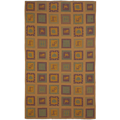 В каждой части общего рисунка, напоминающего лоскутное шитье, изображены главные символы строительной отрасли.