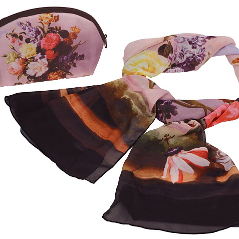 Изысканный подарочный набор для стильной женщины. Косметичка и шарф с цветочным принтом, выполненные в едином стиле, станут отличным дополнением к образу. Настоящий вкус проявляется в деталях.