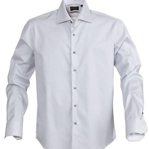 Мужская сорочка современного приталенного кроя из гребенного хлопка качества Easy Care (легко утюжить). Классический узор в полоску с контрастной отделкой оборотной части воротника, изнанки манжет и планки пуговиц. Упрочненные швы воротника и манжет.