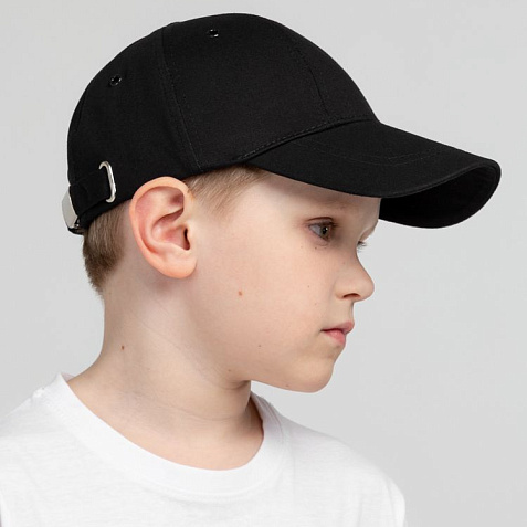 Детская модель с шестью клиньями без шва на лбу. Металлические люверсы покрашены в тон изделия. Сзади металлическая застежка для регулировки размера.