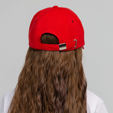 Детская модель с шестью клиньями без шва на лбу. Металлические люверсы покрашены в тон изделия. Сзади металлическая застежка для регулировки размера.