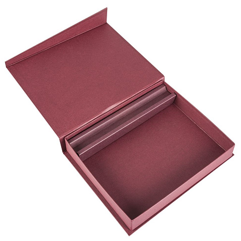 Коробка с клапаном на магните, выполнена из переплетного картона, кашированного бумагой Malmero.