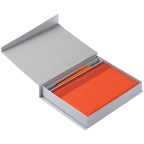 Коробка с клапаном на магните, выполнена из переплетного картона, кашированного бумагой Malmero.