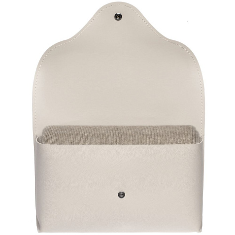 Благодаря кнопке плед можно аккуратно застегнуть посередине, полностью укутавшись в его теплые объятия. Элегантная упаковка-клатч добавляет пледу особого шарма — получается изысканный элитный деловой подарок.
