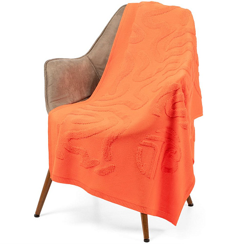 Плед с вывязанным логотипом и рельефным узором в фирменном цвете вашей компании.