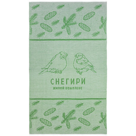 Плед с вывязанным логотипом и индивидуальным рисунком в фирменной цветовой гамме.