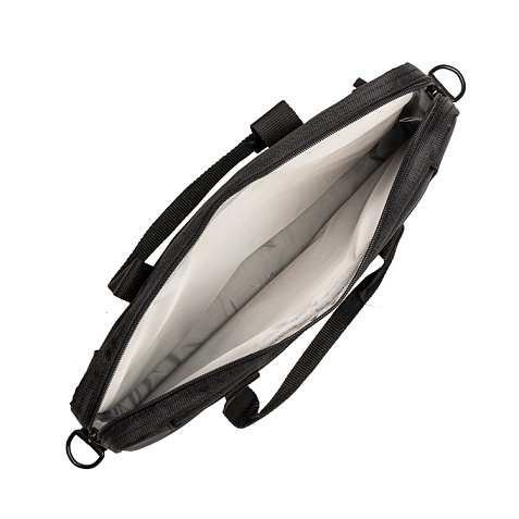 Сумка для ноутбука до 15.6''. • Сумка выполнена из плотного материала для лучшей защиты ноутбука от случайных механических повреждений. • Помимо основного отсека, сумка оснащена тремя дополнительными карманами, в которых без труда разместятся документы, аксессуары и другие небольшие гаджеты. • Двойная молния для удобного доступа к ноутбуку. • Ручки убираются во внешние отделения с двух сторон, что придает сумке более компактный вид. • Регулируемый съемный плечевой ремень. Термотрансфер (1 цвет (цветные изделия)) на данный товар осуществляется бесплатно. Оплачивается только настройка оборудования в размере 10000 рублей на весь тираж.