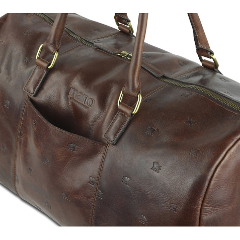 Коллекция DON LEON - квинтэссенция инноваций бренда MANO 1919®. Все изделия коллекции изготовлены вручную из высококачественной натуральной кожи буйвола в роскошном коричневом цвете. Элегантное тиснение в виде льва и изящный логотип подчеркивают индивидуальный стиль коллекции. MANO 1919 ®. Дорожная сумка M191921041 Эстетика и практичность: дорожная сумка M191921041 отличается элегантным стилем и удобной организацией внутреннего пространства. Вместительное отделение и дополнительные карманы обеспечивают идеальное хранение вещей, необходимых для поездки. Дорожная сумка станет незаменимым компаньоном для мужчин, которые ценят удобство и комфорт. Благодаря первоклассной коже, качественной подкладке и надежным застежкам дорожная сумка станет верным спутником в путешествии. Размеры: 27 см (В) x 50 см (Ш) x 24 см (Г) Материал: натуральная кожа буйвола Особенности: • Основное отделение на молнии с внутренним карманом на молнии • 2 больших кармана • Дополнительное отделение • Съемный регулируемый плечевой ремень до 145 см