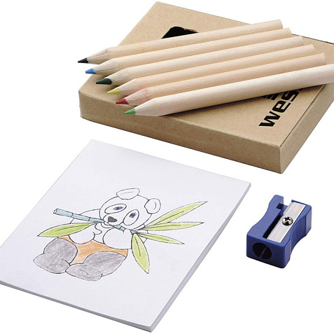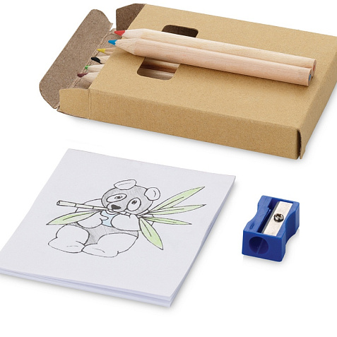 Оригинальный набор для рисования будет отличным промо-сувениром для любой акции креативного направления. Также отлично подойдет для продвижения дизайнерской студии. В наборе 6 цветных карандашей, точилка и раскраска. Комплект упакован в картонную коробку. Тампопечать (1 цвет (цветные изделия)) на данный товар осуществляется бесплатно. Оплачивается только настройка оборудования в размере 4500 рублей на весь тираж.