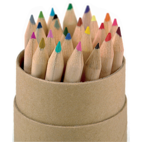 24 цветных карандаша, резинка и точилка в картонной цилиндрической коробке