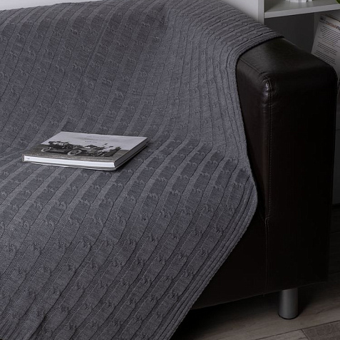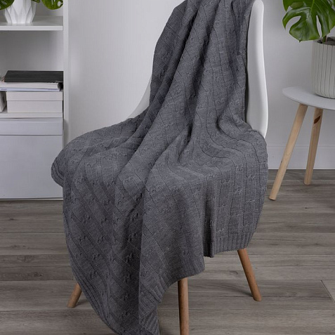Вязаный плед фактурной вязки из меланжевой пряжи.