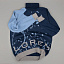 Модель: джемпер, модель унисекс, рукав — реглан, полочка — жаккард, 2–3 цвета нитей, спинка и рукава однотонные — кулирная гладь.