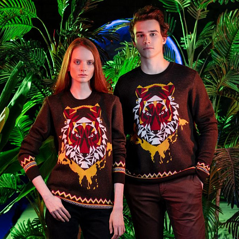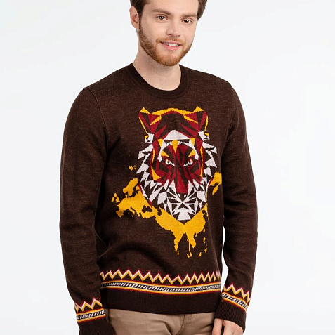 Джемпер с круглым вырезом и жаккардовым рисунком.