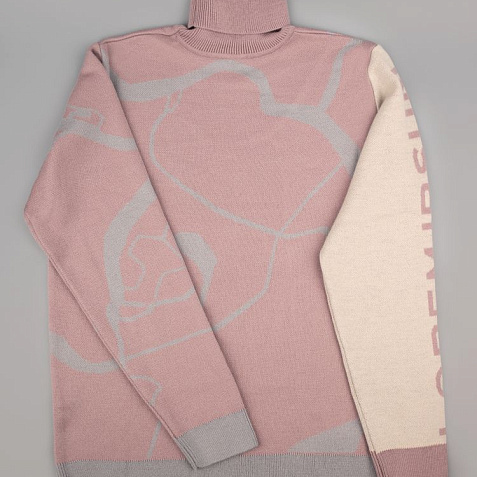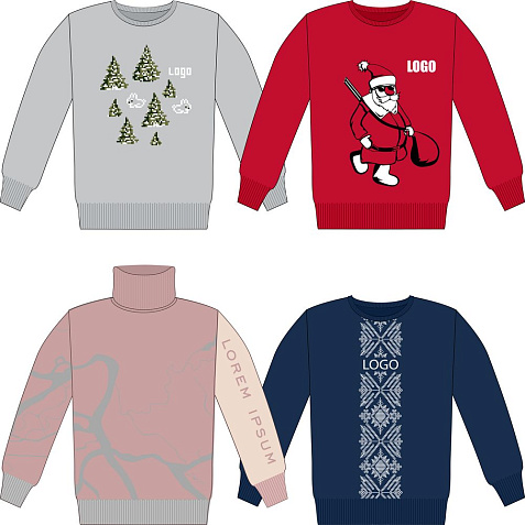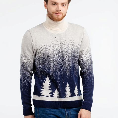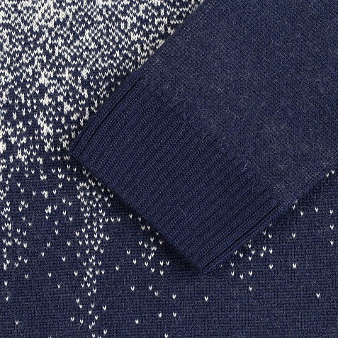 Модель: свитер жаккардовой вязки, плотный и теплый, 2–3 цвета нитей, гладкая поверхность.