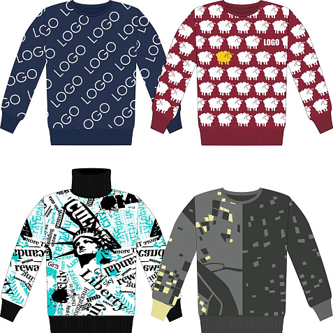 – на однотонных пространствах можно «разделить» полотно (кажется, что свитер двуслойный), поэтому рекомендуется не оставлять больших однотонных площадей.
