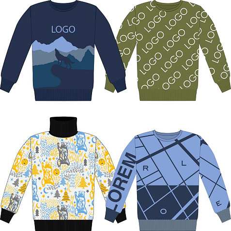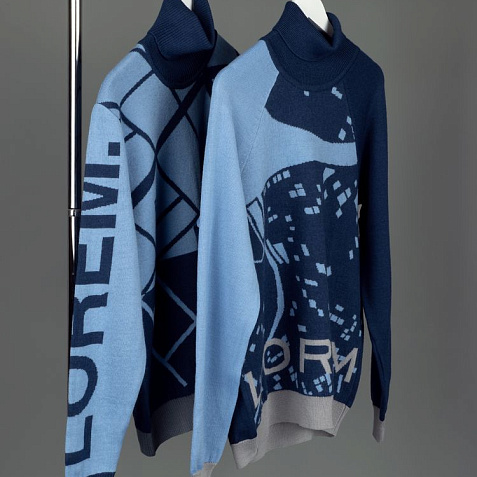– на однотонных пространствах можно «разделить» полотно (кажется, что свитер двуслойный), поэтому рекомендуется не оставлять больших однотонных площадей.