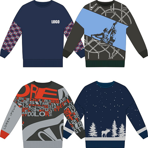 – на однотонных пространствах можно «разделить» полотно (кажется, что свитер двуслойный), поэтому рекомендуется не оставлять больших однотонных площадей.