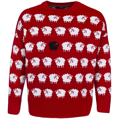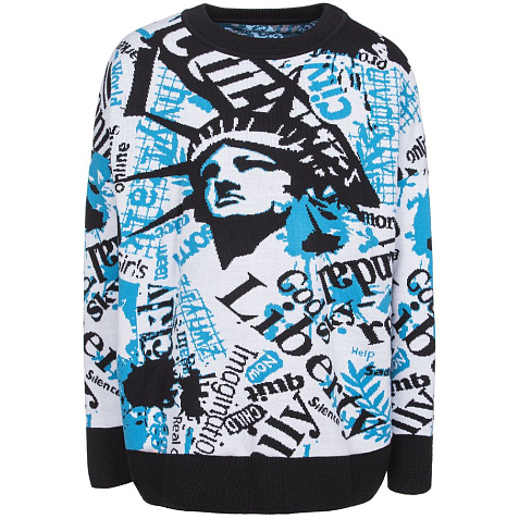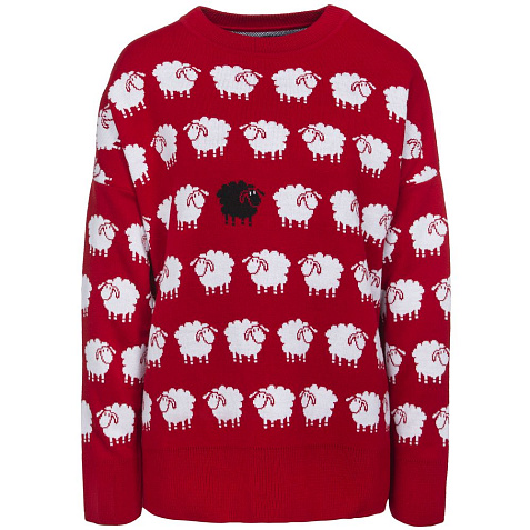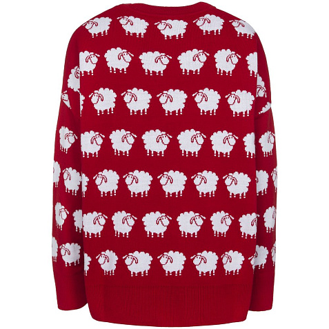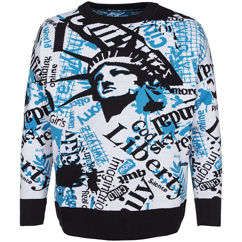 Модель: свитер жаккардовой вязки, плотный и теплый, 2–3 цвета нитей, гладкая поверхность, спущенный рукав, круглый ворот, низ изделия и низ рукавов выполнены резинкой.
