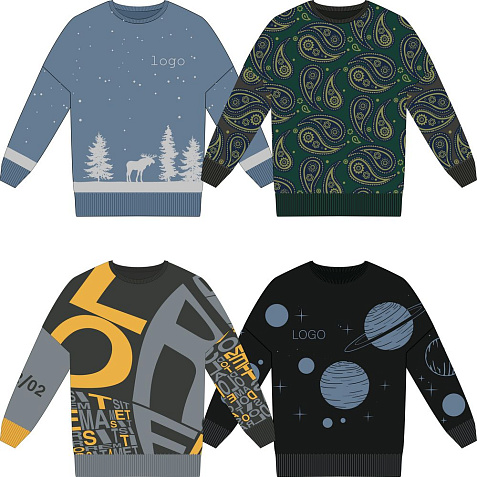 Дополнительные опции: высокий ворот, опцию можно выбрать в форме расчета нанесения. Разрезы по бокам свитера. Можно добавить без увеличения стоимости.