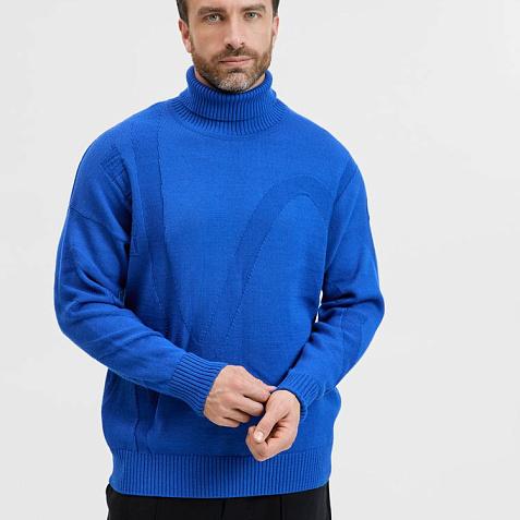 Модель: однотонный гладкий свитер унисекс, спущенное плечо, крупная петля. Чередуя различные типы петель на гладком полотне, можно вывязать любую графику: логотип, текст, товарный знак. Ворот, манжеты и низ изделия вывязаны резинкой.