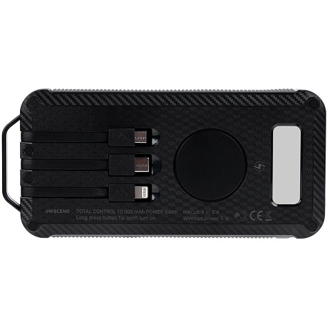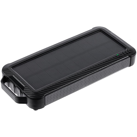 Прорезиненные вставки и рисунок на корпусе с имитацией карбона добавляют хорошей агрессивности внешнему виду аккумулятора — сразу видно, что его хозяин готов к приключениям.