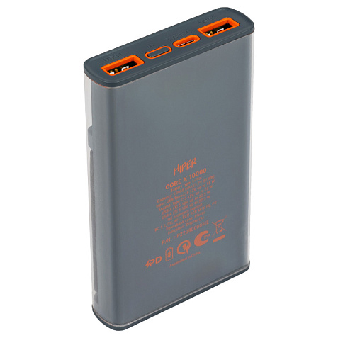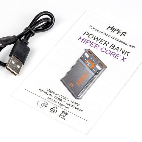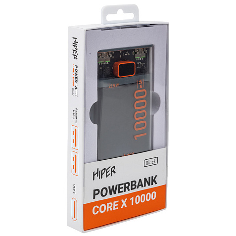 HIPER CORE X 10000 имеет компактные размеры 143х68х17 мм и весит всего 0,24 кг, что делает его легким и удобным для переноски в сумке или кармане.