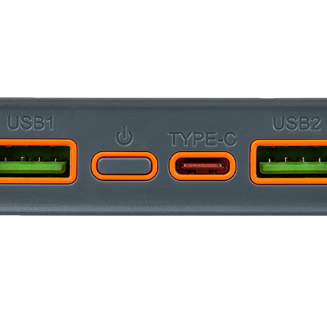 Внешний аккумулятор оснащен несколькими выходными разъемами, включая USB-A и USB-C. USB-A разъемы поддерживают выходное напряжение 5-12 В и мощность до 22.5 Вт каждый, что позволяет заряжать различные устройства, включая смартфоны, планшеты, наушники и другие гаджеты. USB-C разъем поддерживает выходное напряжение 5-12 В и мощность до 20 Вт, что обеспечивает быструю зарядку для устройств с поддержкой этого интерфейса.