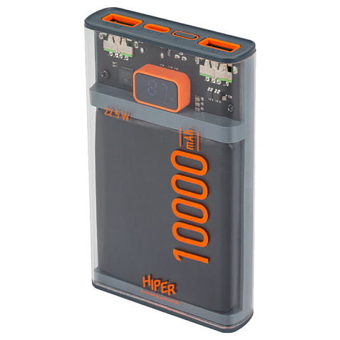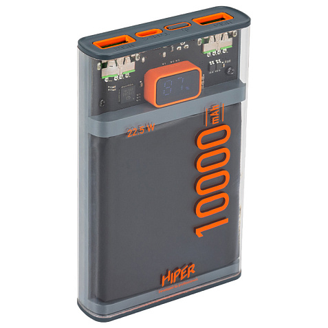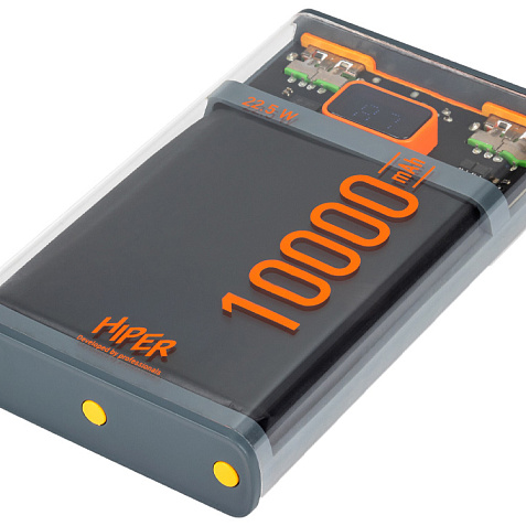 HIPER CORE X 10000 имеет черный корпус из пластика, который не только защищает аккумулятор, но и придает ему стильный и современный вид. Дисплей на корпусе показывает процент заряда аккумулятора, что позволяет вам легко отслеживать уровень заряда.