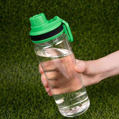 Большая бутылка с откручивающейся крышкой отверстия для питья и ручкой-петлей для переноски. Наполнить всего пару раз — и дневная норма воды будет выпита.