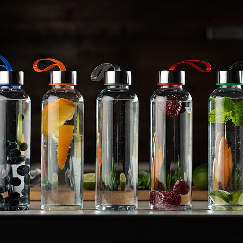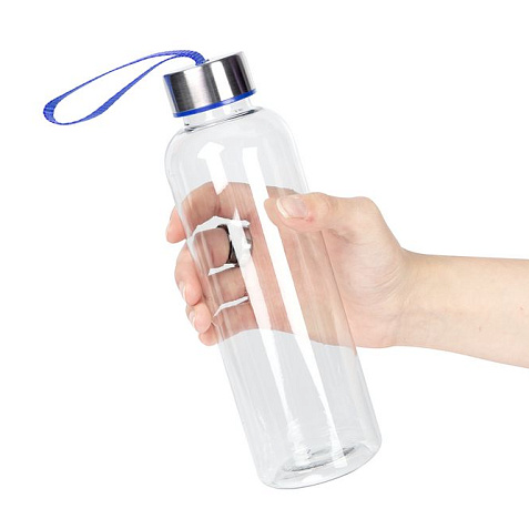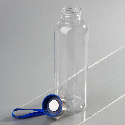 Бутылка для воды классической формы с удобной петлей для переноски и широкими возможностями по нанесению: помимо круговой УФ-печати доступны гравировка крышки или полноцветный трансфер на ремешке.