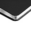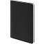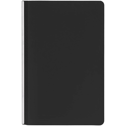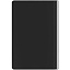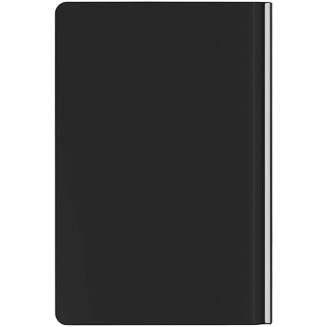 Ежедневник с гибкой обложкой и металлическим корешком, выполнен из материала Soft Touch, черный АА, дополнен серебристым обрезом блока и ляссе.