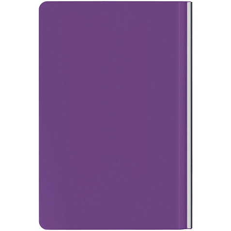 Ежедневник с гибкой обложкой и металлическим корешком, выполнен из материала Soft Touch, фиолетовый UU, дополнен серебристым обрезом блока и ляссе.