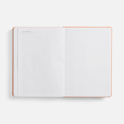 Ежедневник с твердой обложкой, выполнен из материала Latte, оранжевый ОО, дополнен ляссе в цвет обложки.