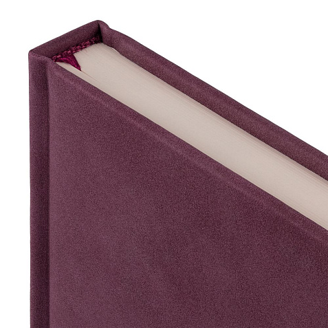 Ежедневник с твердой обложкой c поролоном, выполнен из материала Nubuck, винный SS, дополнен капталом и ляссе бордового цвета. Застежка — хлястик на магните.