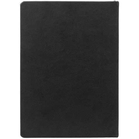 Ежедневник с твердой обложкой и тонированным обрезом. Выполнен из материала Latte, черный, дополнен ляссе в цвет обложки.