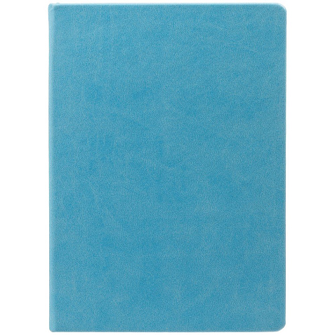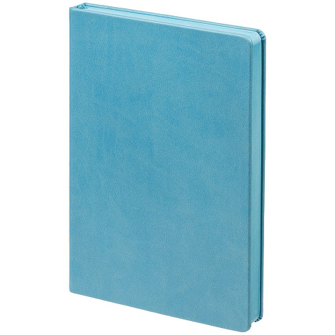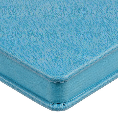 Ежедневник с твердой обложкой и тонированным обрезом. Выполнен из материала Latte, голубой, дополнен ляссе в цвет обложки.