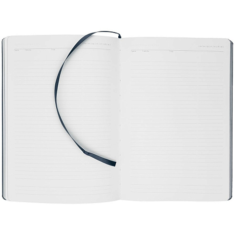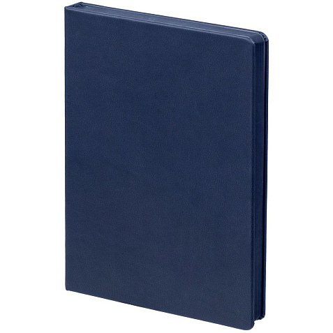 Ежедневник с твердой обложкой и тонированным обрезом. Выполнен из материала Latte, темно-синий, дополнен ляссе в цвет обложки.