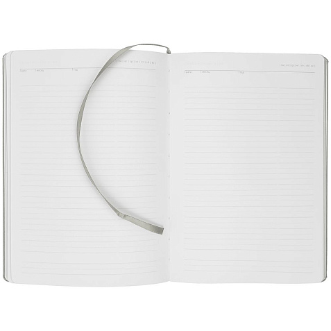 Ежедневник с твердой обложкой и тонированным обрезом. Выполнен из материала Latte, серый, дополнен ляссе в цвет обложки.