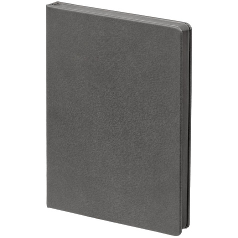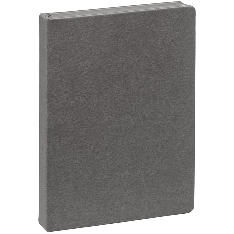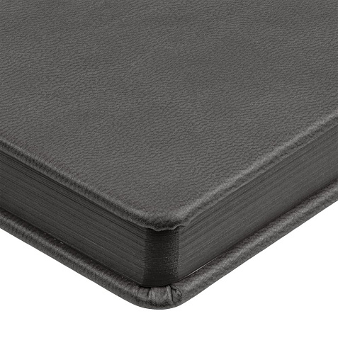 Ежедневник с твердой обложкой и тонированным обрезом. Выполнен из материала Latte, темно-серый, дополнен ляссе в цвет обложки.