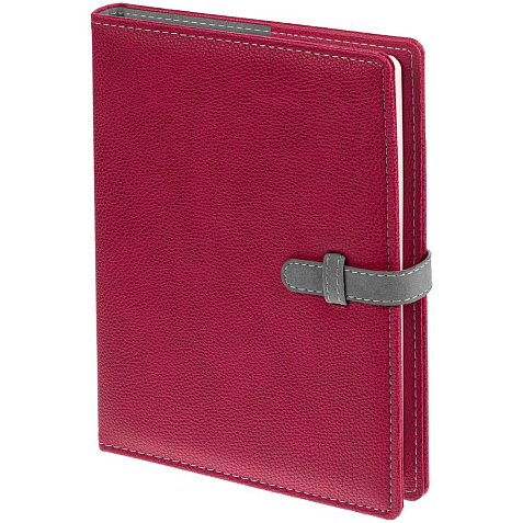 Ежедневник в мягкой суперобложке, выполнен из материала La Fite, малиновый LL, дополнен ляссе белого цвета.